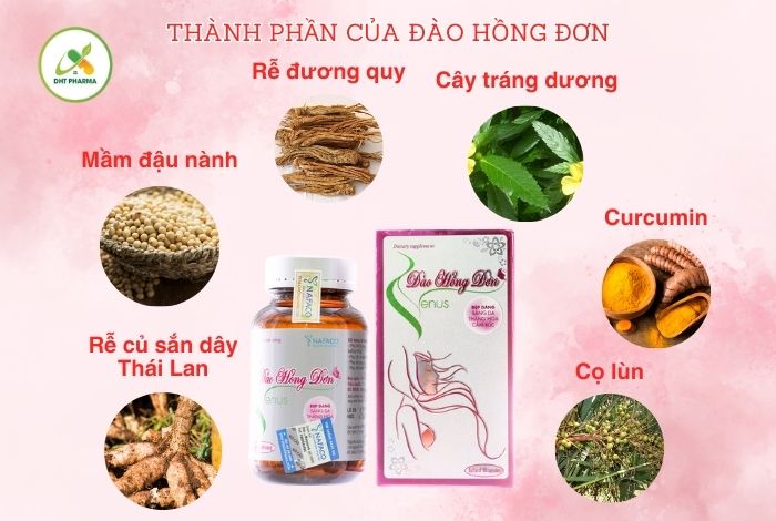 Đào Hồng Đơn là sản phẩm chăm sóc sức khỏe và sắc đẹp dành cho phụ nữ được chiết xuất hoàn toàn từ các nguyên liệu tự nhiên quý giá như sắn dây Thái Lan, mầm đậu nành, cọ lùn, đương quy... với liều lượng phù hợp. Vì vậy chị em có thể hoàn toàn yên tâm sử dụng để cải thiện sức khỏe và sắc đẹp mà không cần lo lắng về tác dụng phụ.
