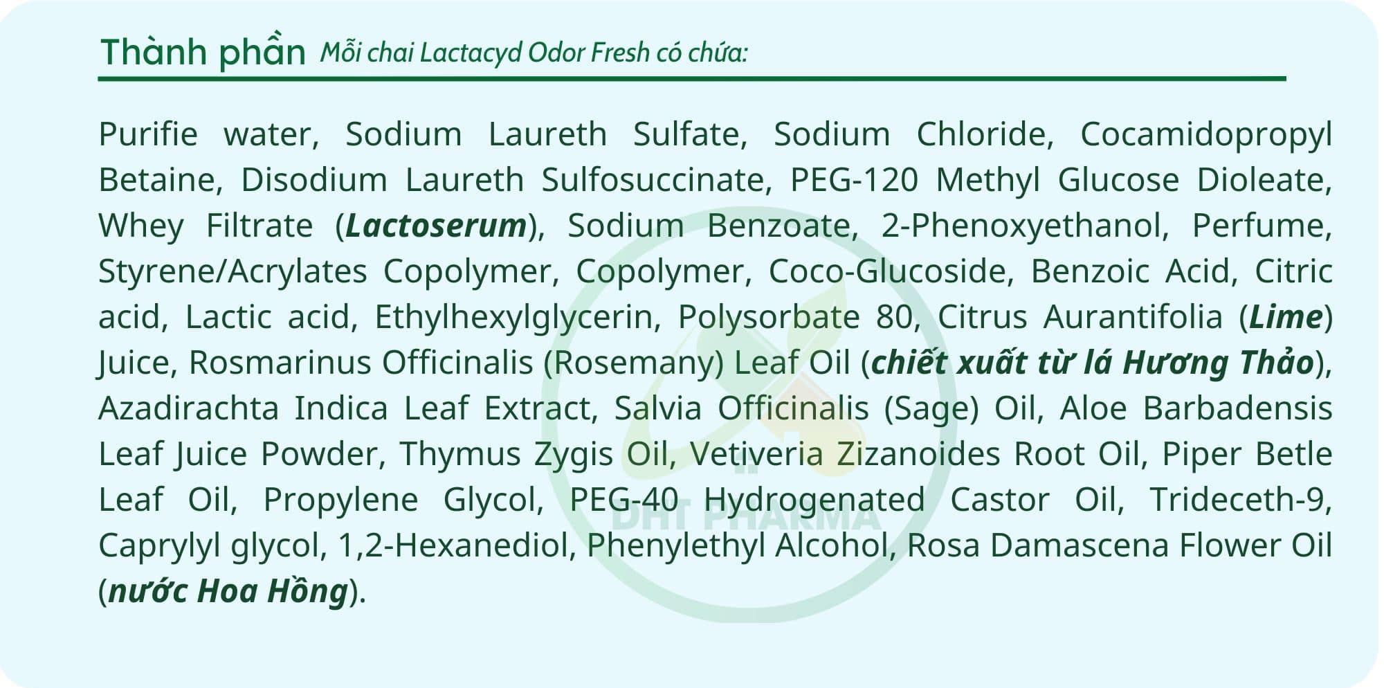 Lactacyd Odor Fresh thành phần